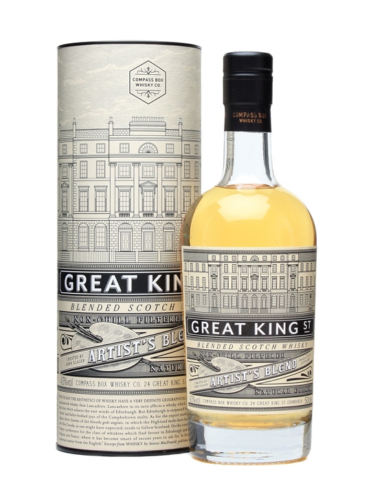 This brand, Great King Street, is part of the Compass Box empire. The idea behind it is, I think, to bring great affordable blends back to the global hordes who love Scotch whisky - to fight the evil bottles of J&B and Dewar's and Cutty Sark that ruin and besmirch the good name of Scotch in liquor cabinets everywhere - all at a reasonable price.